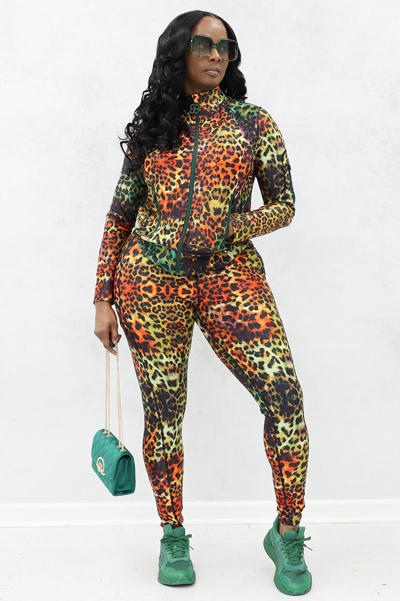 The Safari Jacket blends comfort and style with its stretchy fabric and colorful cheetah print. With two front pockets and a handy sleeve pocket.